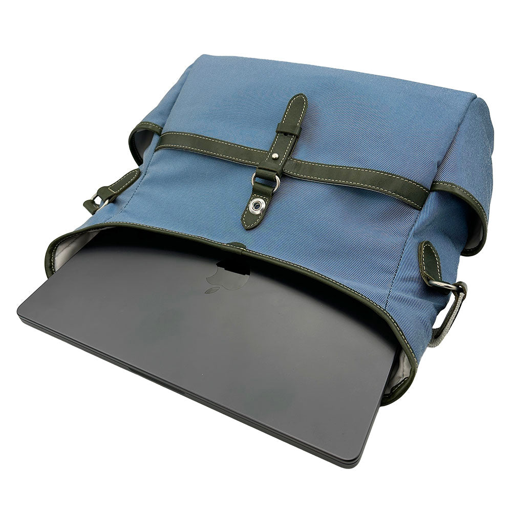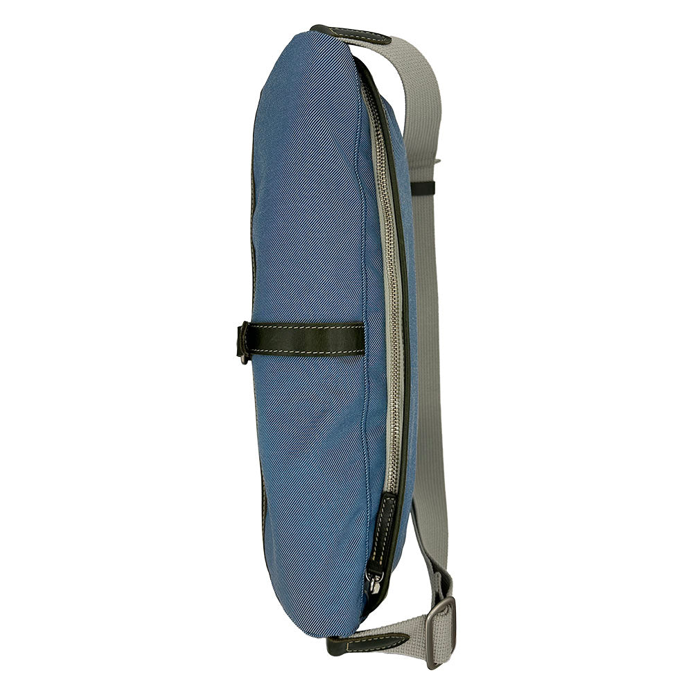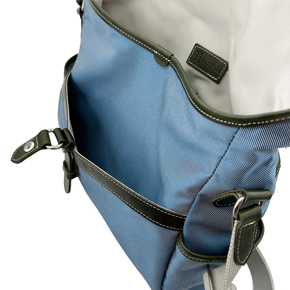 デザイナーが豊岡を流れる「円山川」から着想を得た、柔らかな曲線デザイン。 背中側に向けて斜めに取り付けられたショルダーベルトと、計算された台形のフォルムが、身体の曲面に驚くほど自然にフィットします。散歩や旅行中、荷物の重さを感じさせない「リラックスできる背負い心地」を追求しました。