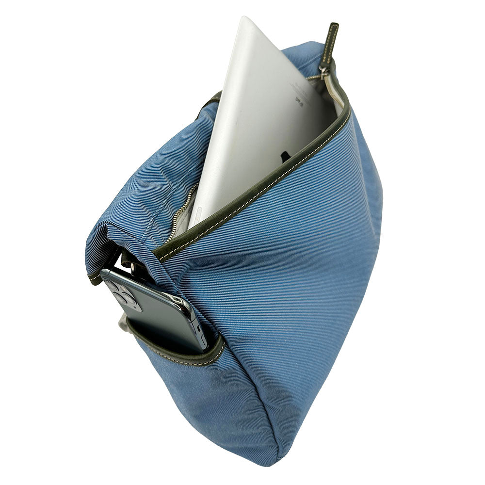 開口部は丸みを帯びたラインで大きく開き、荷物の出し入れがスムーズ。軽量でありながら適度な柔軟性を持ち、街歩きから自然の中でのウォーキングまで、あらゆるシーンに馴染みます。
