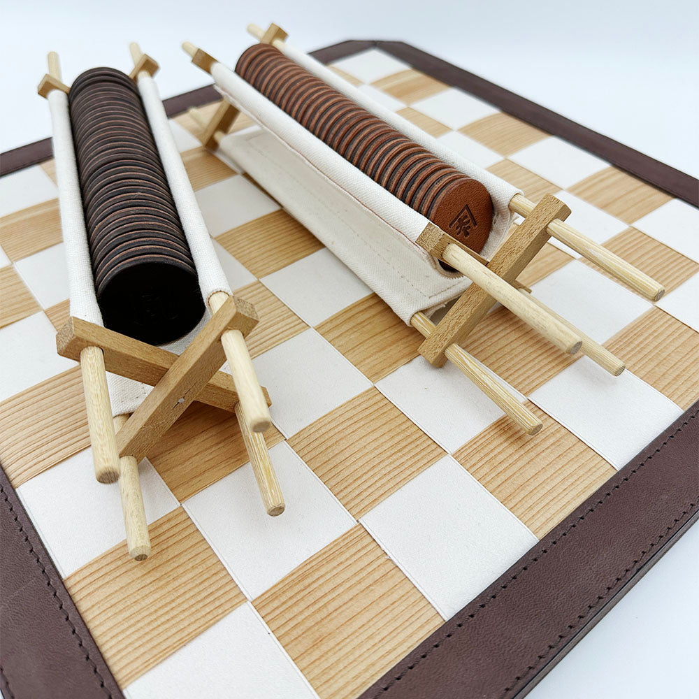 伝統工芸が融合した「杉と革が織りなすリバーシ」
