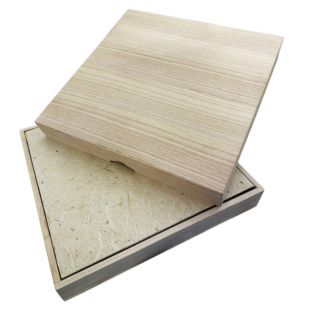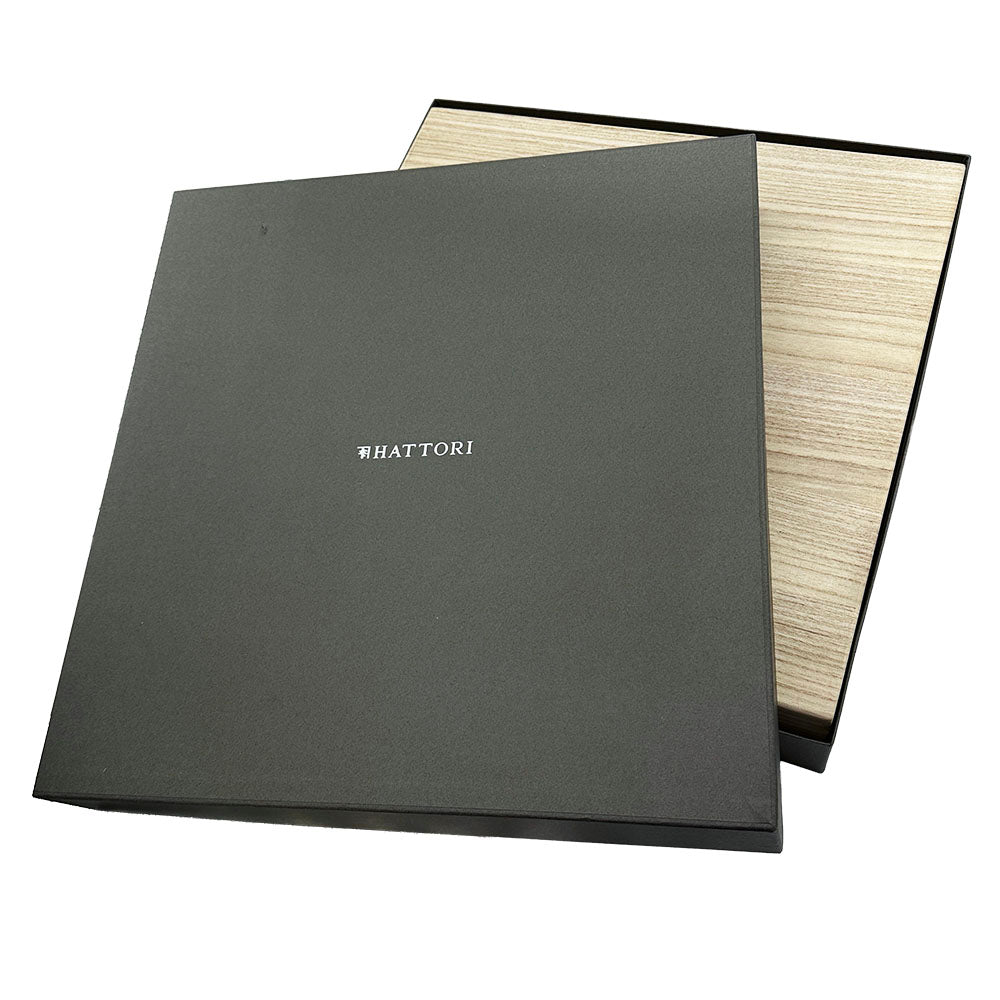 商品を守るために精緻に設計されたジャストサイズの特注桐箱。軽量ながら高い強度を持ち、防虫・防湿効果に優れた桐は、古来より日本の大切な品を守る最高の素材として重宝されてきました。内部には、京都の和紙職人集団「いとをかし工房」が漉き上げたオリジナルの手漉き和紙で丁寧に包んだクッション材を配置。和紙の繊維が適度に湿気を吸収し放出することで、呼吸する杉材との相性が抜群です。伝統素材が互いに響き合い、大切な作品を末永く最良の状態で保存します。